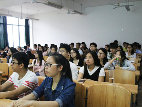 交流会中,两名优秀同学依次从考研方向、资料收集、复习方法等方面分享了考研经验。首先,朱晓珍学姐谈及如何克服考研过程中的一些困难等问题,她强调考研要有自信,确立目标、坚定信念并为此付出实践。紧接着,刘露露学姐从考研院校的选择、各科复习方法和经验总结三方面进行介绍考研经验。她向同学推荐一些优秀的教材辅助资料,并详细地介绍了各科学习的方法,总结了九点经验,她说:“资料在于精,不在于多;错题也是宝贝,充分利用好错题本;不轻易放弃;在学习之余,注意锻炼身体,有利于平衡心态”。
