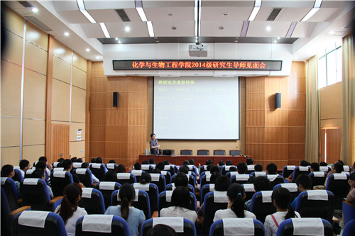 在雁山校区萃华楼学术报告厅召开2014级硕士研究生新生见面会。学院党委书记梁军、院长李建平、副院长刘峥、杨建文、副书记陶剑飞、全体硕士生导师、研究生辅导员以及2014级新生参加了会议。会议由刘峥副院长主持。