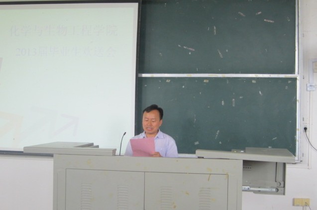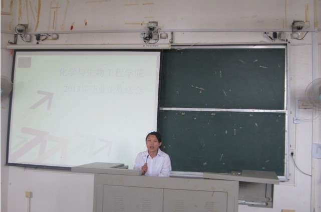 光阴似箭,转眼之间,又到了毕业的季节。为了让2013届毕业生对大学生活能够画上一个圆满的句号,化生学院于6月20日下午在雁山校区05101教室隆重举行了2013届毕业生欢送大会。学院党委胡祖生书记、院长李建平教授、副院长杨建文教授、院长助理海洪副教授、各教研室主任、辅导员、班导师与全体2013届毕业生参加了本次欢送会。欢送大会由学院党委陶剑飞副书记主持。