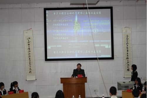 4月20日下午,化生学院与桂林电子科技大学电子工程与自动化学院第13届友谊辩论赛在桂林电子科技大学实训楼报告厅进行。出席本场辩论赛的嘉宾有桂林电子科技大学电子工程与自动化学院团委书记李祥斌老师、化生学院团委书记周德海老师、化生学院团委副书记杨晓老师以及双方学生代表。
