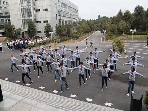 比赛伊始,由13级辅导员陈文甫老师作简短致辞,随后主持人宣布比赛正式开始,各参赛班级依次入场进行比赛。随着广播的音乐声响起,同学们着统一的服装,踩着节拍,踏着步子,身姿矫健,动作标准,队形整齐,自信并充满活力,展现出了同学们团结一致、积极进取的良好精神风貌,赢得了评委们的一致好评。