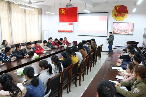 活动伊始,全体人员起立,奏唱团歌。接着,梁书记借“看两会,青春行”系列主题团日活动举办之际,提醒党员同学及入党积极分子切实加强理论学习,认真做好“两学一做”。梁书记说道:“创新是引领发展的第一动力,人才是创新核心的急具要素,同学们要不断学习,不断创新,创新篇章,朋辈互助,共同成长”。团日活动中段,大家共同观看两会视频,了解时事动向,探讨民生问题,并就相关问题展开了激烈讨论。活动最后,林小芳等同学就创新创业大赛及大创项目的结题答辩做经验分享,林小芳同学与大家分享了在实验室的收获,并激励同学们:“耐不住寂寞,守不住繁华”;代注顶同学则从前期准备、实地调研和论文的准备等方面提出建议。
