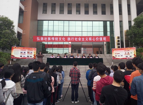 在雁山校区萃华楼前广场举行“弘扬壮族传统文化,践行社会主义核心价值观”活动启动仪式。快看漫画