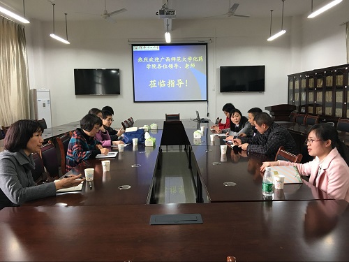 导航痕迹 当前位置: 快看漫画 >> 新闻资讯 >> 快看漫画新闻 >> 正文 广西师范大学化学与药学学院潘英明副院长一行到访快看漫画 作者:李海云 发布日期:2016-04-10 浏览次数: 4月1日,广西师范大学化学与药学学院潘英明副院长一行8人到访快看漫画 。受学院委托,院长助理李海云、学院团委书记饶筠筠、院办教学秘书汪雯等老师在雁山校区12217会议室接待了来访客人。 座谈会上,院长助理李海云代表学院向潘英明副院长一行介绍了学院的基本情况,并简要介绍了快看漫画 在去年本科教学审核评估中的若干举措。双方在本科教学审核评估、实验室建设、大学生学术型人才培养等方面进行了交流和探讨。教务处教学评价与质量管理中心主任李新老师出席座谈会。座谈会后,潘英明副院长一行还参观考察了快看漫画 本科教学实验室。 图一:座谈会现场 图二:合影留念 上一条:快看漫画 组织开展大学生海外游学面试 下一条:快看漫画 领导、老师走访学生宿舍