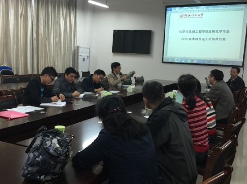 会上,杜甫佑主任首先详细介绍了《髙等学校化学类专业指导性专业规范》、《化学类专业本科教学质量国家标准》与《教务处关于修订2015版本科专业人才培养方案的原则意见》等多个相关文件内容与相关要求。接着,与会教师对有关课程或课时的增减、部分课程的承担单位以及专业课程设置等项目进行逐项讨论。会议气氛热烈,与会人员踊跃发言,充分表达了各自的观点和意见。