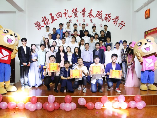 本次歌咏汇,生物工程2014-2班演唱的《马克思是个90后》,以现代的多元素创演,独特的领唱、成功俘获评委观众的心,夺取桂冠。化工14卓越班指挥潘帅池以精准的打点,有力、标准的指挥,获得“最佳指挥员”荣誉称号。