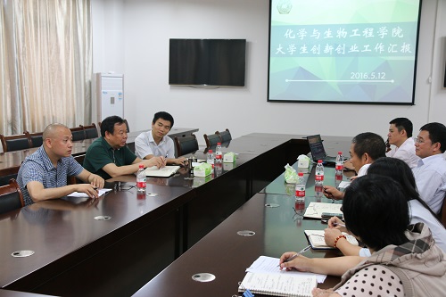 调研指导大学生创新创业教育工作,校团委书记周国桥、教务处副处长覃业飞陪同调研,学院党委书记梁军、院长李建平,党委副书记陶剑飞、副院长潘宏程以及相关人员与会。