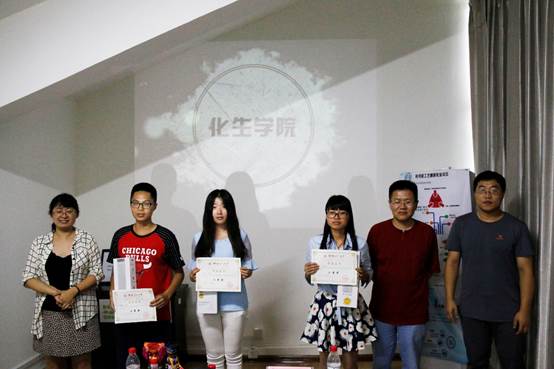 6月14日,化生学院举行第六届大学生科技文化节闭幕式暨生物技能大赛之食品安全知识竞赛颁奖典礼。学院党委书记梁军教授、副院长张淑华教授、党委副书记陶剑飞老师、学院副调研员周德海老师、生物工程教研室主任李霞老师和生物工程教研室副主任李培骏老师以及学院学工办全体老师出席了本次活动。本次仪式由团委书记饶筠筠老师主持。