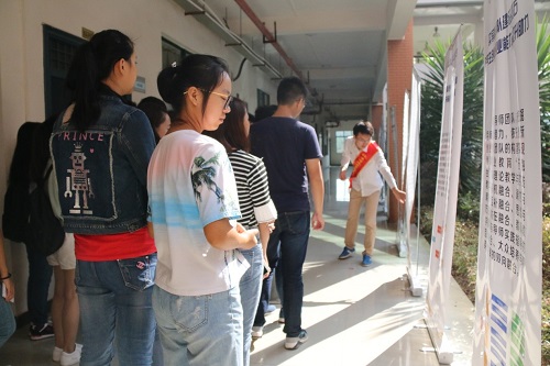 2016级新生在班助的带领下按班级顺序分批前往萃华楼,参观学院大学生创新创业成果展、专业实验室以及快看漫画