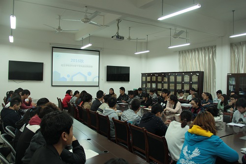 在雁山校区12217会议室召开学生骨干学风建设推进会。参加会议的有学院党委副书记陶剑飞、团委书记饶筠筠、16级辅导员何宗辉以及15级辅导员李冲,学院主要学生干部。会议由李冲老师主持。