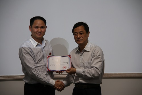 学校副厅级调研员张劲松为江门市楚材科技有限公司广东江门湖南商会 副会长 袁国良颁发聘书
