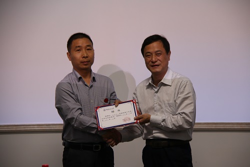 学校副厅级调研员张劲松为广东四方威凯科技集团董事长、广东江门湖南商会会长方芳颁发聘书
