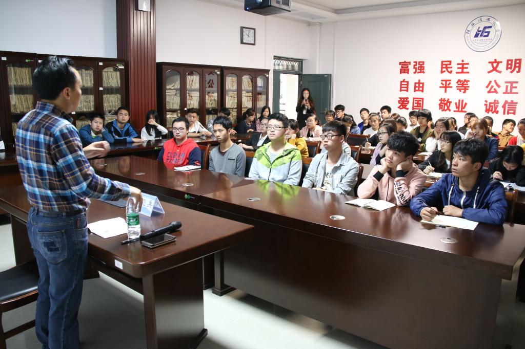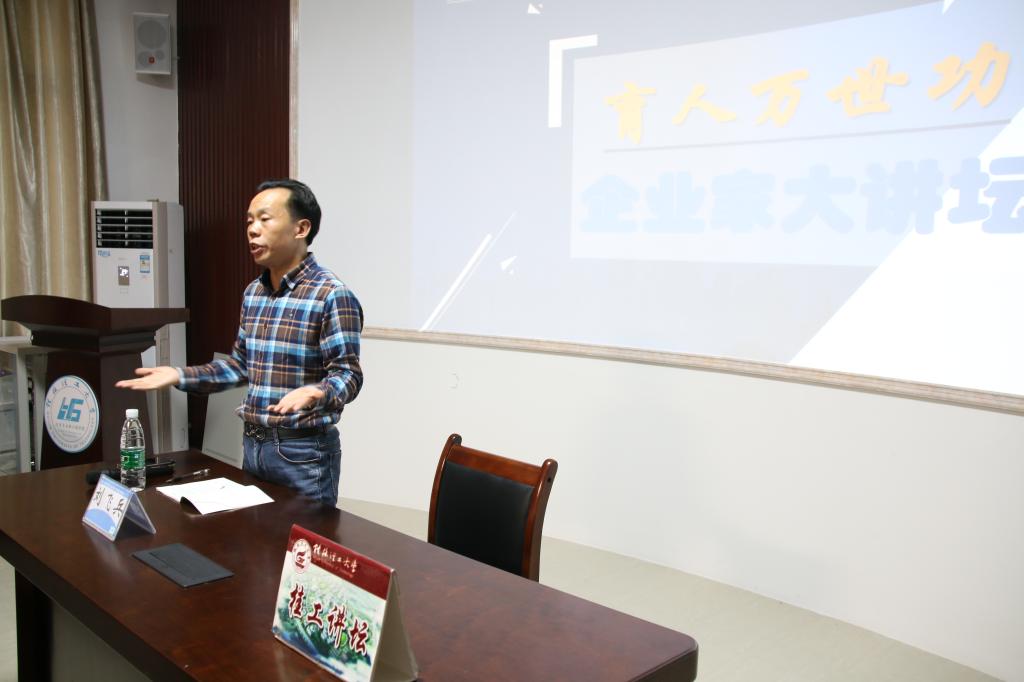 于萃华楼217多功能厅举办“育人万世功,企业家大讲坛”主题讲座,应邀主讲人是广东江门湖南商会执行会长、广东源天福红木家具有限公司董事长刘飞兵。讲座由学院党委陶剑飞副书记主持。