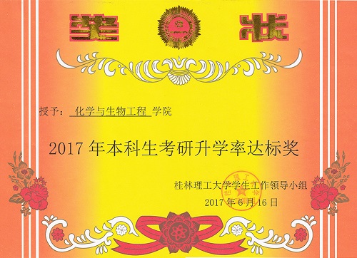 在2017年考研工作中表现突出,受到表彰。获得2017年本科生“考研升学率达标奖”。