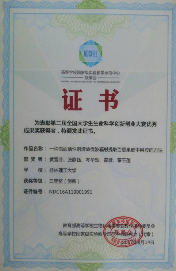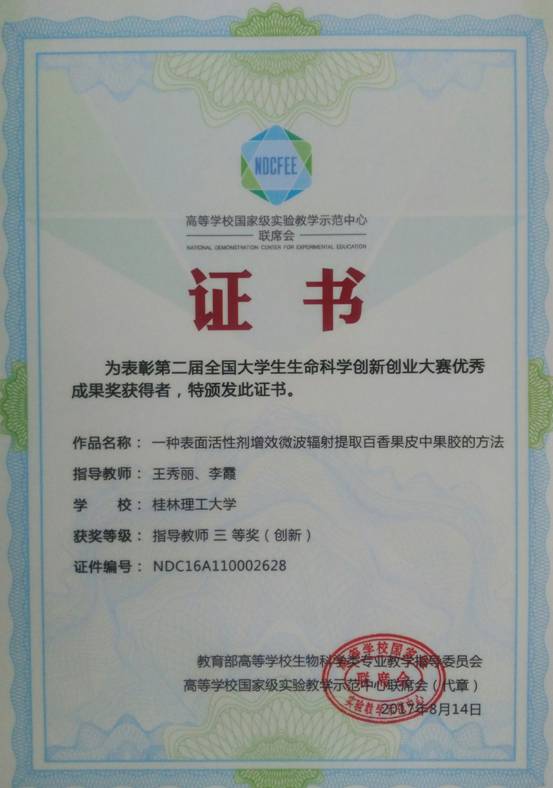 导航痕迹 当前位置: 快看漫画 >> 新闻资讯 >> 快看漫画新闻 >> 正文 快看漫画 学子在“第二届全国大学生生命科学创新创业大赛”中喜获三等奖 作者:王秀丽 发布日期:2017-09-05 浏览次数: 最近,快看漫画 生物工程专业学子黄雪芳、张静钰、岑华勋、黄健、覃玉莲等五名同学的发明专利作品——《一种表面活性剂增效微波辐射提取百香果皮中果胶的方法》在“第二届全国大学生生命科学创新创业大赛”中荣获三等奖,指导教师为快看漫画 王秀丽高级工程师和李霞副教授。 据悉,“第二届全国大学生生命科学创新创业大赛”由教育部高等学校生物科学类专业教学指导委员、高等学校国家级实验教学示范中心联席会联合主办,由兰州大学承办,本届大赛共收到来自全国173所高校的参赛作品共计733项。快看漫画 学子首次参加该项赛事并荣获三等奖。 上一条:深入走访,化生学院扎实做好开学初学生安全稳定工作 下一条:快看漫画 召开新学期全院教工会议传达落实学校主要领导讲话精神