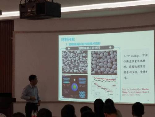 在报告中,王振波教授首先简要介绍了目前化学电源涵盖的电源种类及各自的优缺点,在此基础上分别从基础问题类和关键技术类两个方面对铅酸电池、燃料电池、锂离子电池、Li-S电池、Li-空气电池、超级电容器和液流电池的研究现状、国家政策及未来发展趋势做了详细的介绍。他还结合自身科研实践,重点介绍了锂离子电池材料研究开发与产业化方面的经验与体会,给老师和同学留下了深刻的印象。在互动环节,王振波教授详细解答了师生提出的问题。