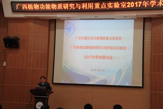本次学术研讨会共设邀请报告1个、大会报告11个、专题报告7个。包括香港科技大学颜河教授、广西植物研究所科研处处长黄永林研究员、广西植物功能物质研究与利用重点实验室副主任潘争红研究员、化生学院各研究方向和团队负责人等专家作了学术报告。此次学术会议展示了两个实验室近几年所取得的成绩,加强了重点实验室之间、研究团队之间的沟通与交流,拓展相关专业师生的学术视野,为今后实验室建设、研究团队进一步开展科研合作提供了良好平台。