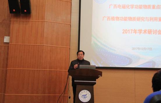 学校副校长、广西电磁化学功能物质重点实验室主任梁福沛教授在开幕式上致辞