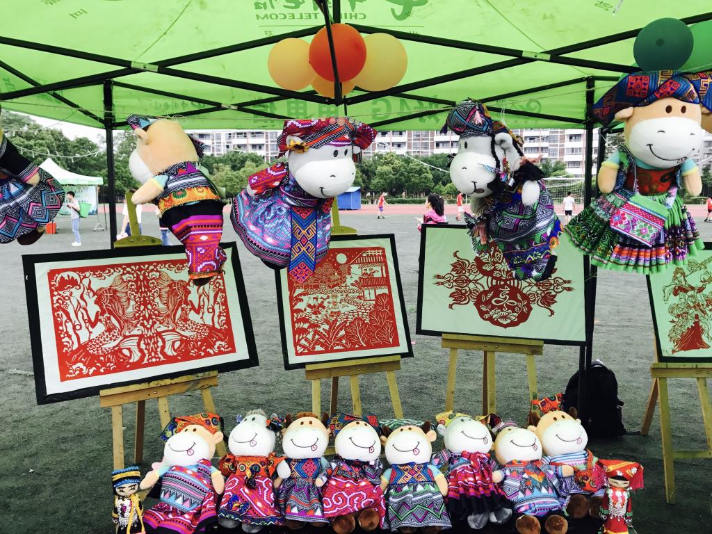 在本次活动中致力于文化长廊的建设,以壮族的衣、食、住、俗文化为基底,通过趣味知识竞答赢取壮族传统美食的形式,向同学们普及壮族传统文化知识;通过壮族图腾公仔班级DIY大赛,加深学生对壮族“牛文化”的理解;通过邀请现场学生参与壮族特色体育活动竹竿舞,增强活动趣味性,成为全场焦点。