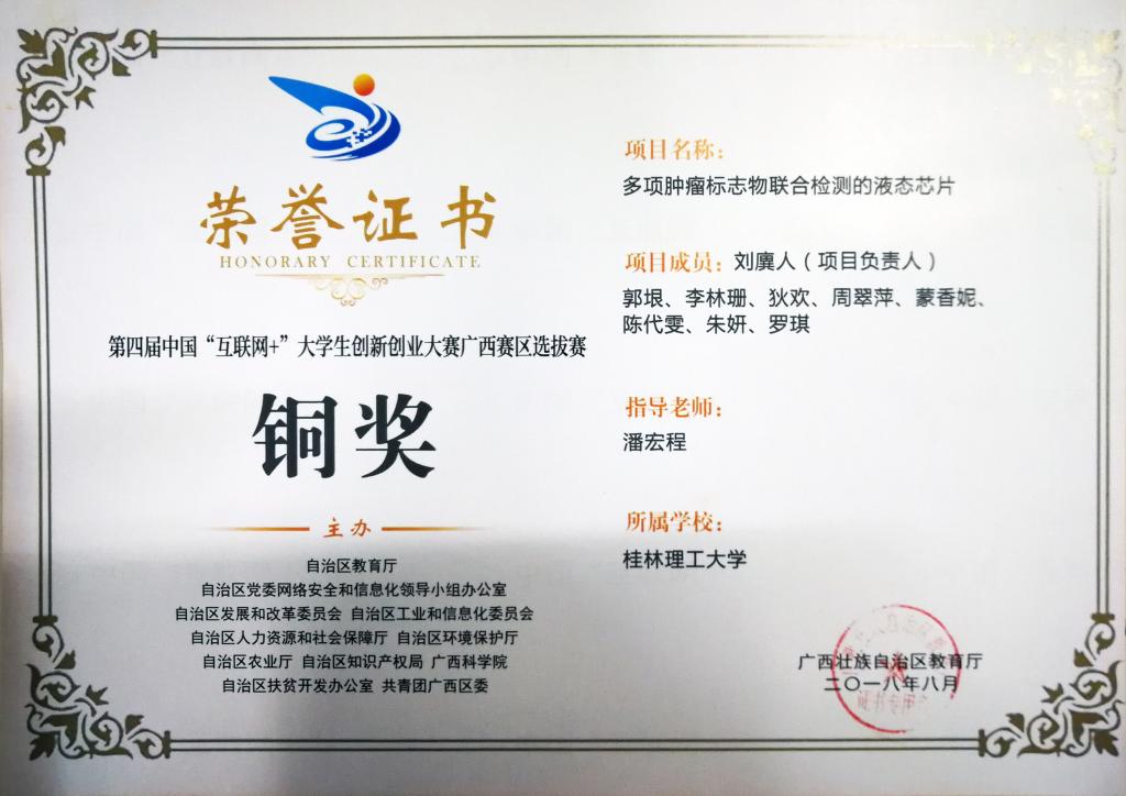 铜奖获奖证书
