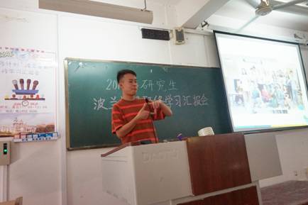 在雁山校区06201多媒体教室举办了今年研究生波兰暑期研修交流会。此次汇报会邀请了2016级研究生分析化学专业的程珍芳和化学工程与技术专业的王浩同学与大家分享访学见闻。