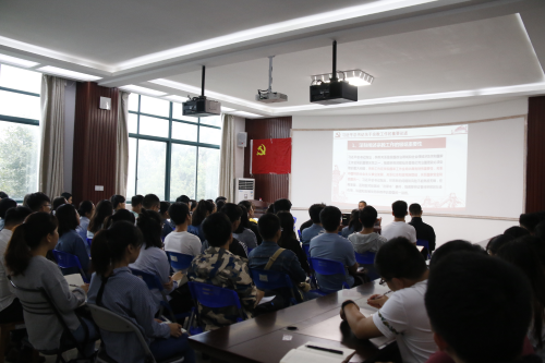 党委书记梁军教授在12217会议室为全体师生党员做意识形态教育专题报告。