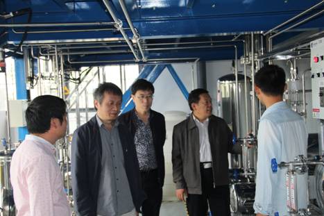 曹子英教授(中)、刘勋教授(左2)与李和平教授在化工大型实训装置现场