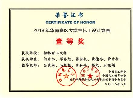 化工专业学生较好地理解了本次大赛的主题,工程设计能力得到了总体提升。获奖情况如下: