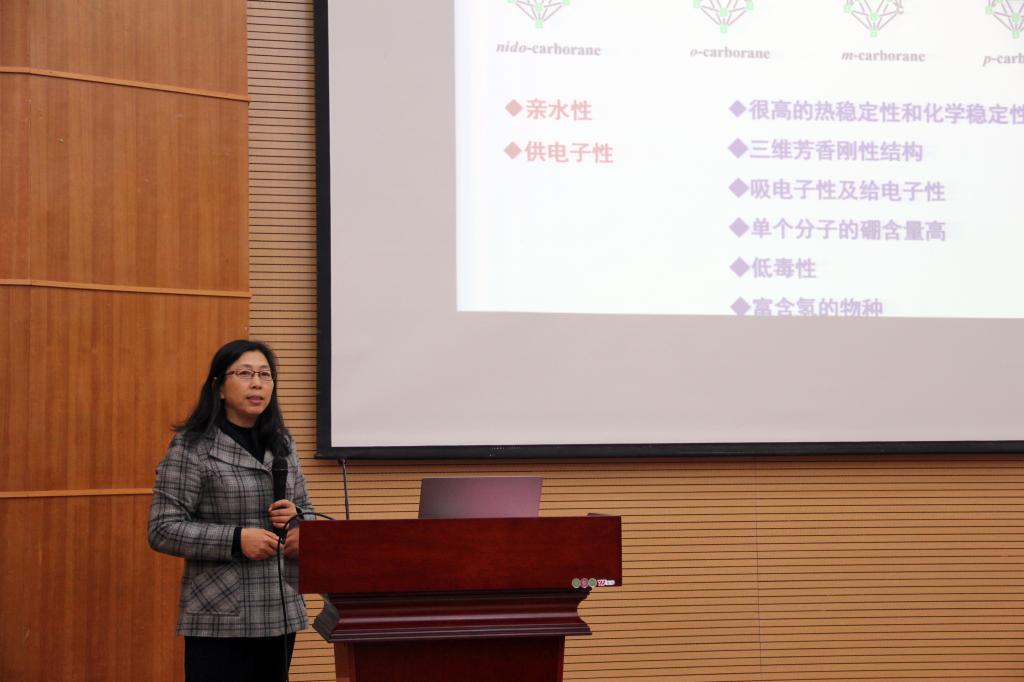 在特邀报告环节,燕红教授、潘安强教授分别作了题为“碳硼烷功能化及应用潜能”、“高容量电极材料优化设计及其电化学行为研究”的学术报告。燕红教授从碳硼烷的性质、碳硼烷衍生物的应用、碳硼烷化学重要研究发展、碳硼烷调控配合物的发光及碳硼烷调控三苯胺衍生物的双光子吸收等方面详细介绍了碳硼烷,并以大量的实例阐释了碳硼烷衍生物发光材料及其在生物成像等方面的潜在应用。燕红教授谈到,搞科研要有恒心,忌讳跟着热点转,盲目换研究方向。潘安强教授在报告中介绍了高容量电极材料优化设计的社会背景,从锂离子电池的性能与材料的密切关系指出改进电池材料及其优化设计的必要性,向大家介绍高容量硫族化合物负极材料及纤维材料的优势,并生动的展示了双金属硫化物作为钠离子电池高性能负极材料的研究成果。此外,潘安强教授还就科研思维的培养与师生们进行了交流。