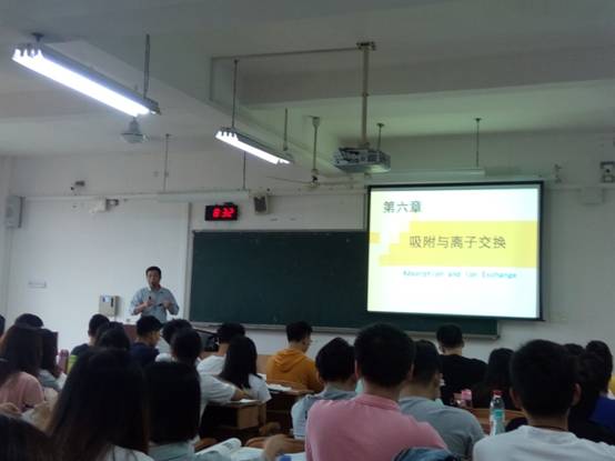 本节课李海云教授讲授的是“吸附与离子交换”。他以课本知识点为线索,以贴近生活的话题导入,启发学生对主题的思考。为了便于学生理解并引起他们的兴趣,李老师巧妙的将思政元素自然地融合贯穿到教学过程中。在吸附知识的讲授环节,讲述了我国古代制糖工人在生产实践中发现黄泥吸附粗糖色素,以及马王堆出土的木炭防腐除湿等,充分体现了我国古代劳动人民的智慧,增强了同学们的民族认同感和爱国热情。李老师还讲述了中国离子交换树脂工业开创者何炳林院士的事迹,既突出了何院士“锐意进取,学以致用”的思政主题,同时也强调了离子交换的方法和意义。课堂气氛活跃,学生的学习积极性很高,教学效果良好。授课环节结束后,听课的领导和老师们针对课堂教学进行了讨论,充分肯定了本次课程的思政效果,提出了一些建设性的意见,并就思政课教学的心得进行了交流。