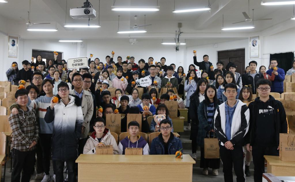 动员会上,李南老师代表学院全体师生向考研学子表达了学院的亲切关怀和殷切期望,并保证学院会竭尽所能为大家创造良好的考研条件,为考研保驾护航。同时,结合自身考研与考博经历,向同学们提出几点希望与要求:一是端正考风、严肃考纪,做到诚信考试;二是一鼓作气,积极应考,切勿轻易放弃,顺利走完考研之路;三是劳逸结合、调整状态,做好出行安全和饮食卫生,以保障顺利完成考试。黄道坤老师就准考证打印、考试时间与要求、考场查询与确认等方面提醒同学们及时做好准备。随后,学院老师们将精心准备的考研慰问礼包发放给大家,期望给所有考研学子加油助力。