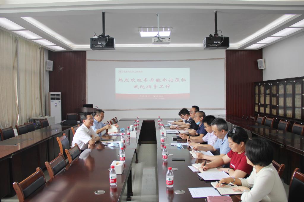 会上,学院党委书记梁军向韦书记介绍了学院的基本情况,并就学院疫情防控、党风廉政建设、脱贫攻坚、毕业生就业等工作做了详细汇报。随后,学院匡小军院长及各分管领导分别汇报了所分管的工作情况和下一步的工作安排。