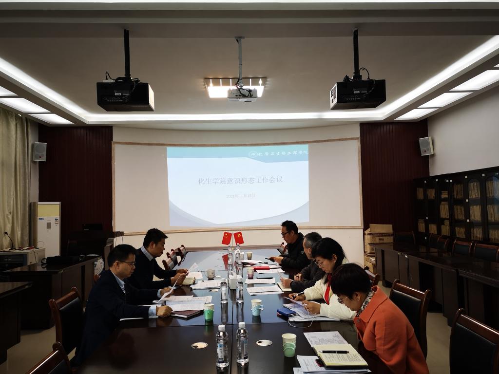 在雁山校区12217多功能室召开意识形态工作专题会议。学院全体党政领导班子成员参加了会议。会议由学院党委书记彭代江主持。