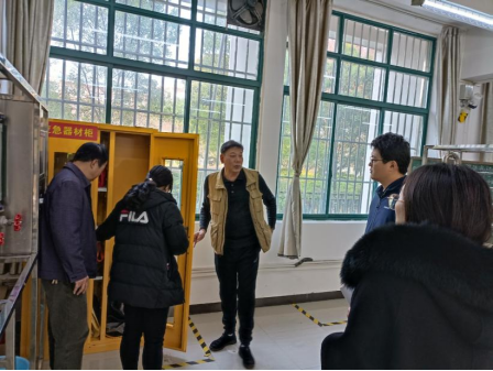 本次安全检查重点对广西电磁化学功能物质重点实验室的大型仪器管理、危险化学品存放等进行了检查,并现场指导学生使用实验药品登记、实验室保持通风、用水用电安全注意事项等。