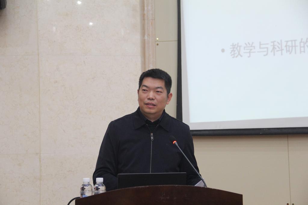 会议的第一环节为交流报告。唐群副教授、及方华副教授分别作了题为《潜心教研待花开》、《‘念念不忘,必有回响’——做个老师,其实挺好》的教学工作经验交流报告,张云教授作了科研工作经验介绍,团委书记张萌萌讲解了创新创业工作有关事项。