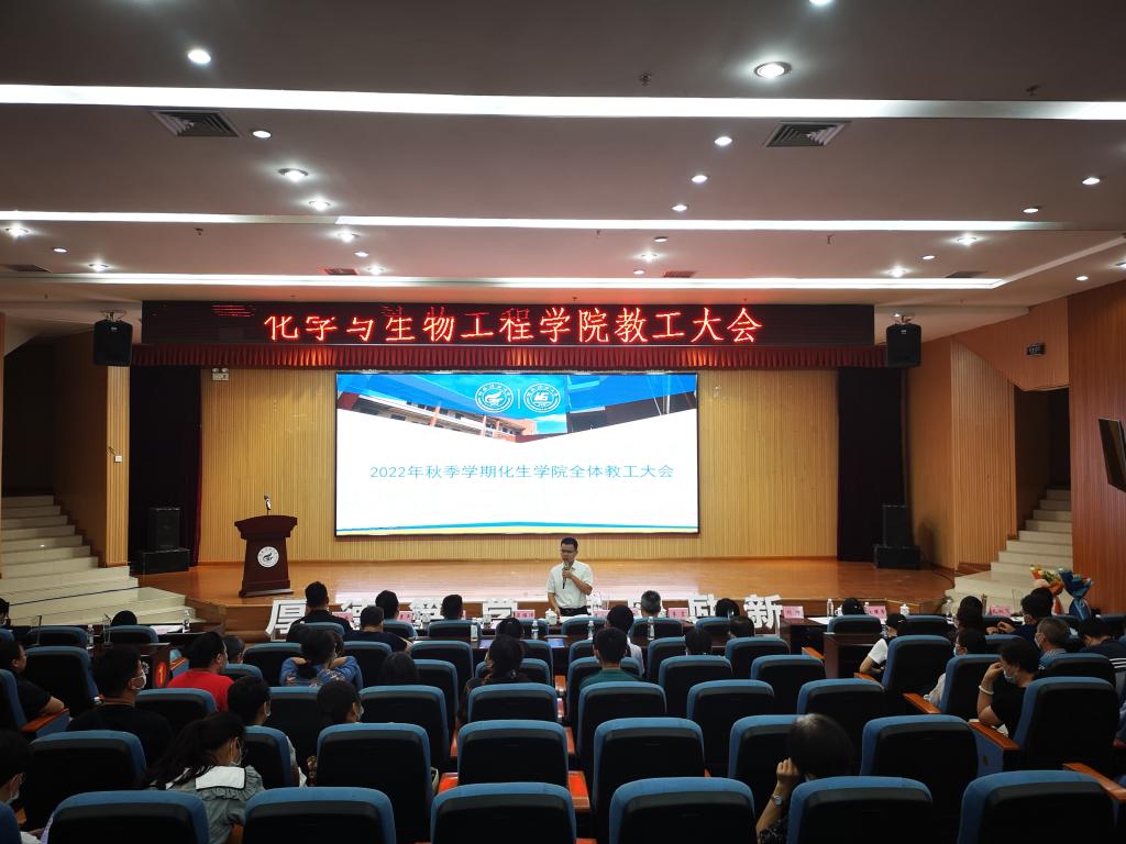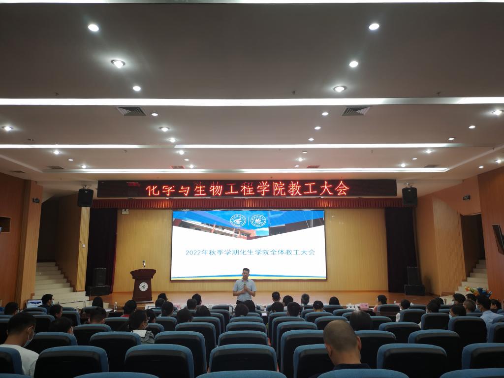 在雁山校区图书馆报告厅召开了全院教工大会。学院全体教工参会会议,会议由学院院长匡小军主持。