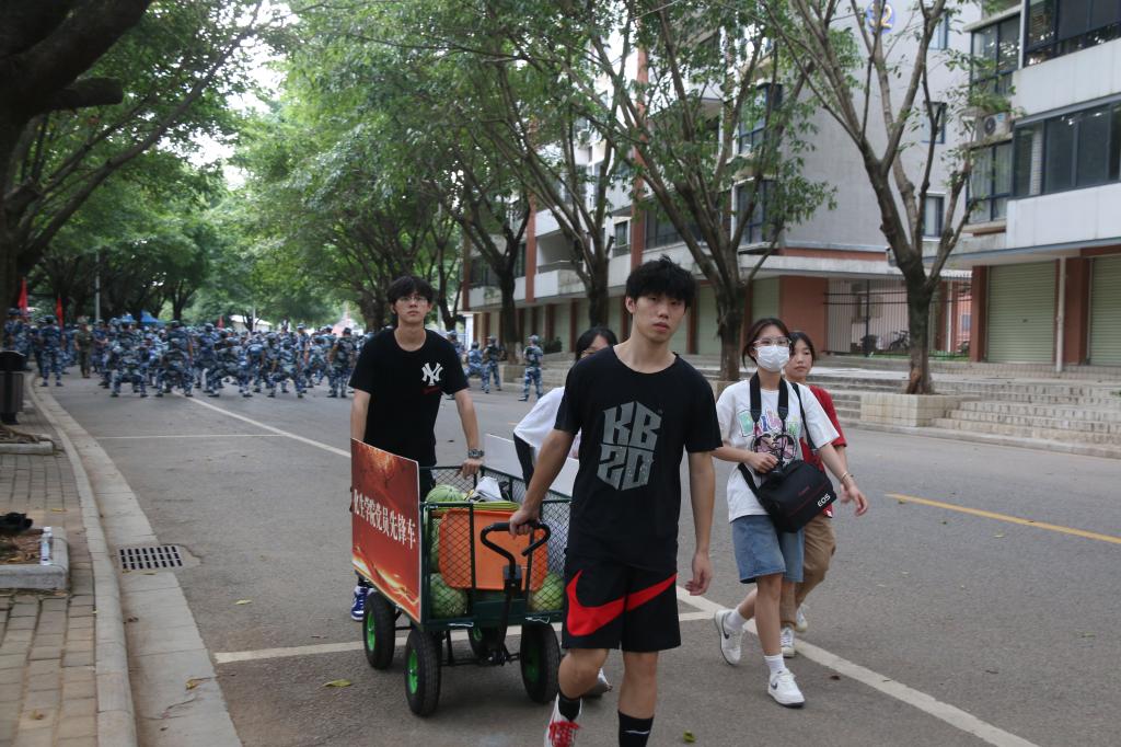 李南副书记为2022级军训学生分发西瓜