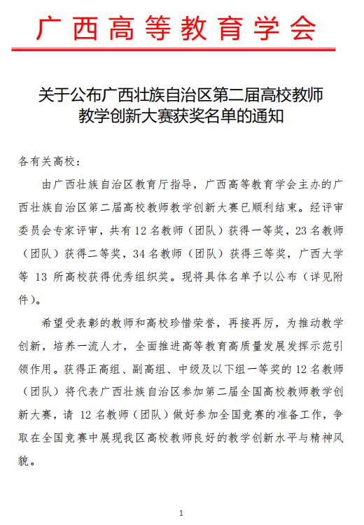 近日,广西高等教育学会公布了第二届广西高校教师教学创新大赛获奖名单,快看漫画