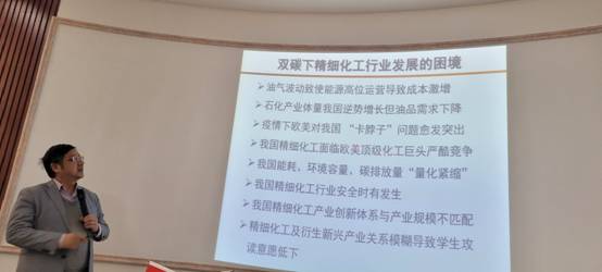 邀请,在雁山校区12217会议室作了题为:双碳“精细化工”的学术报告。报告会由学院副院长何方主持,学院部分教师与研究生聆听了本次报告。