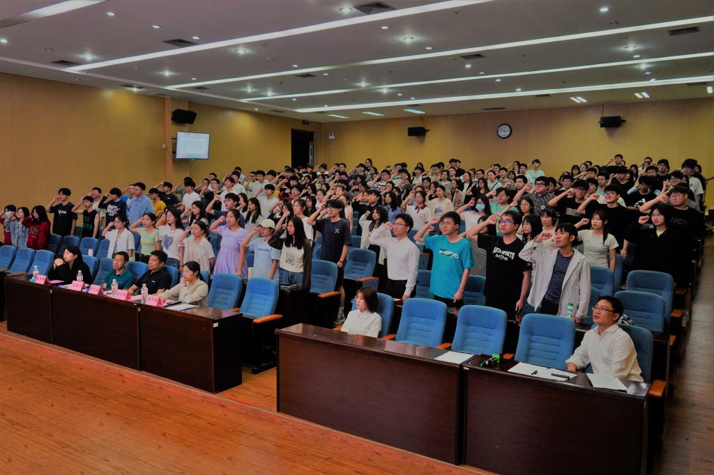2024届已录取优秀考研学子代表陈梦琦上台发言,分享了自己的考研经验。2025届考研学子代表陈红联发言,表达了对考研的坚定目标,号召大家一道要满怀信心、怀抱远大理想,一战成功。接着,2025届考研学子进行了集体宣誓。