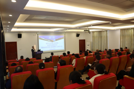 于1月18日在屏风校区协同创新中心会议室召开学院召开改革发展研讨会暨2024年年终全院教职工总结大会。学校党委常委、副校长黎贞崇莅临指导,学院全体教师参加了此次会议,会议由学院院长匡小军主持。