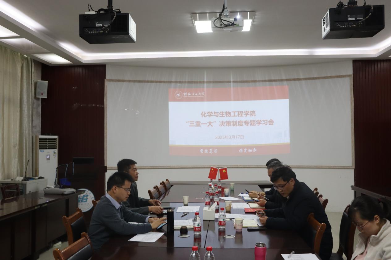 3月17日下午,化学与生物工程学院在12217会议室召开了“三重一大”决策制度专题学习会。会议由学院党委书记彭代江主持,学院领导班子全体成员、党政办公室主任参加此次学习。此次学习会旨在深入贯彻落实学校党委关于“三重一大”决策制度落实情况专项巡察发现问题的整改,对问题进行梳理归纳,并深入剖析根源,明确了责任领导、工作任务和完成时限。