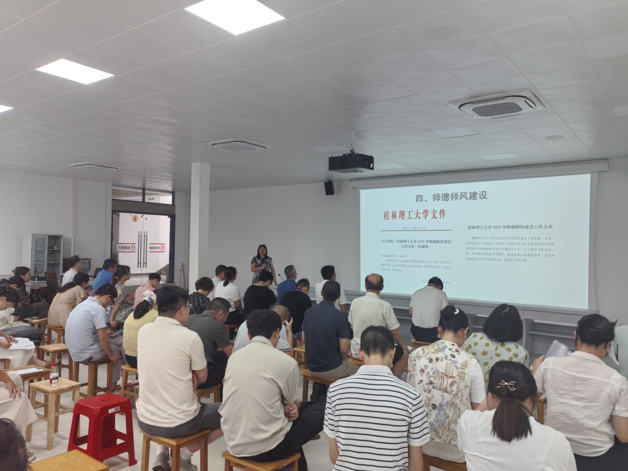 召开师德师风建设与课堂教学质量专题工作会议,全体教职工参会。会议由学院副院长李霞主持。