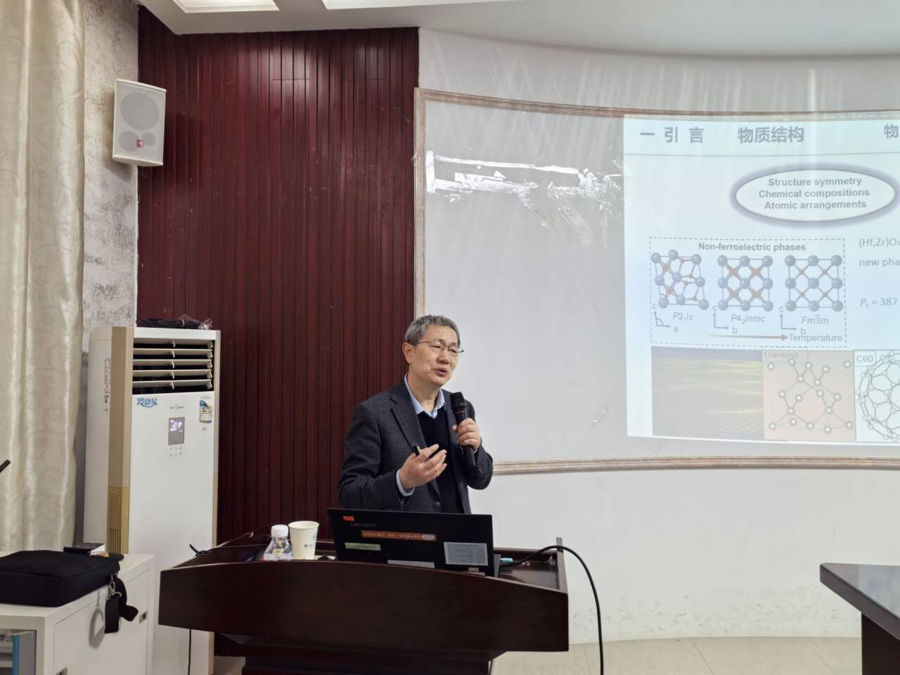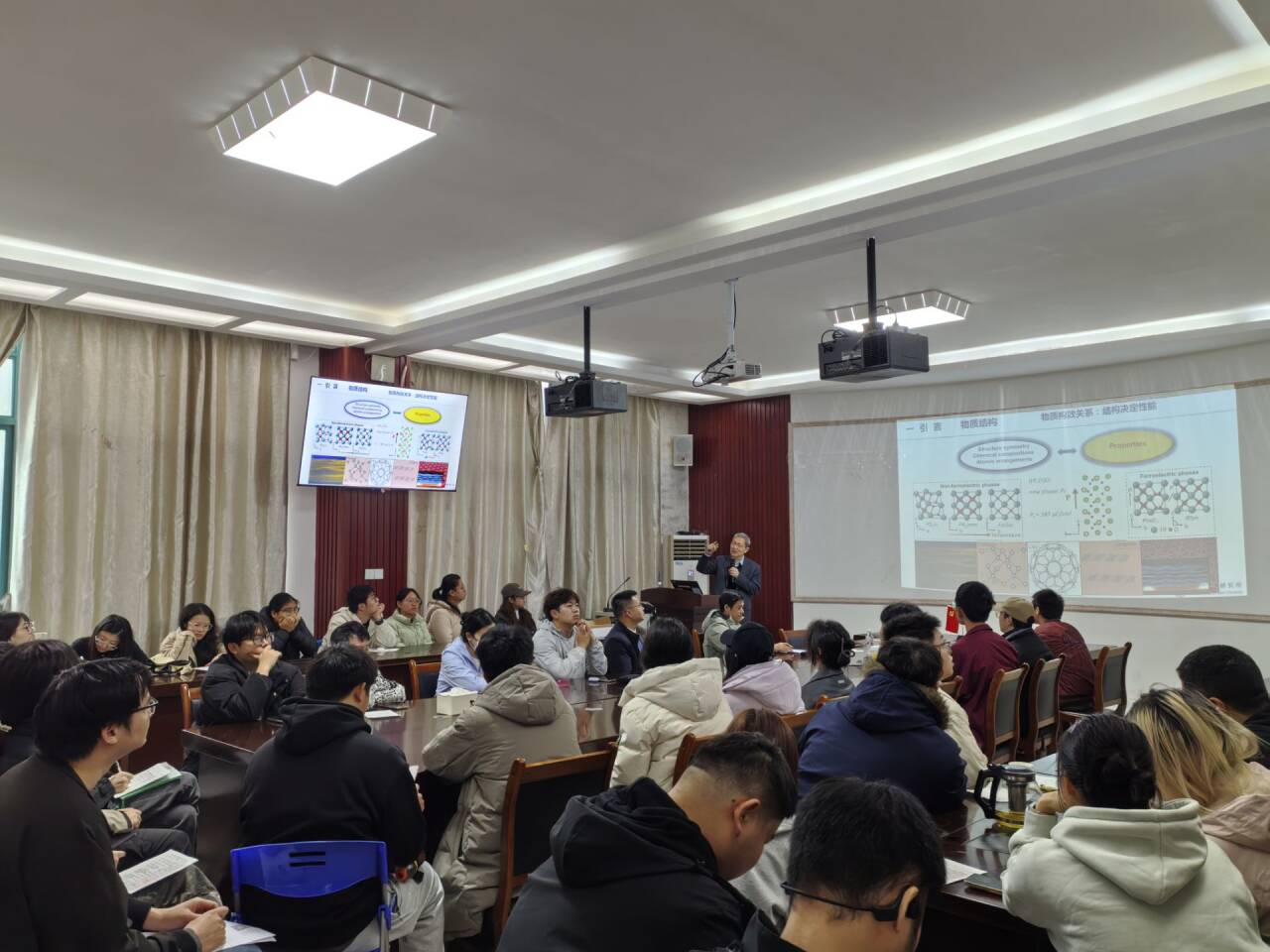 雁山校区萃华楼217室作题为《固体局域结构与物性》的学术报告。报告会由学院副院长潘宏程主持,近百名师生到场参加。