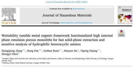 阮贵华研究员课题组在多孔聚合物材料的制备及其应用研究领域再次取得重要进展。团队研究成果以题为Wettability tunable metal organic framework functionalized high internal phase emulsion porous monoliths for fast solid-phase extraction and sensitive analysis of hydrophilic heterocyclic amines的论文被环境科学与生态学类国际知名期刊Journal of Hazardous Materials(IF=10.588)录用并正式发表。该项研究得到国家自然科学基金以及广西自然科学基金等多个项目的资助,快看漫画