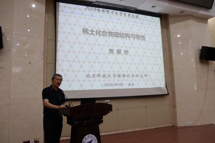 95日下午,北京科技大学固体化学研究所所长邢献然教授应邀在雁山校区萃华楼报告厅做了题为《稀土化合物磁结构与物性》的专题讲座,讲座由学院院长匡小军教授主持,全院100余名师生参加了报告会。