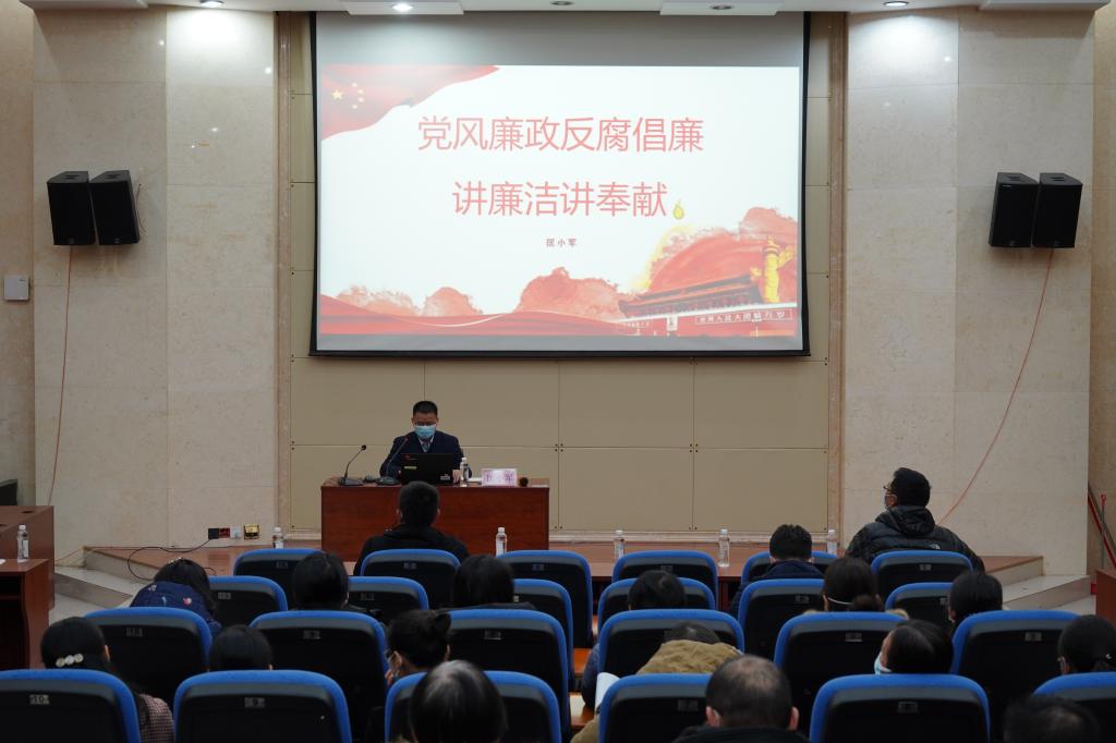 会上,学院院长匡小军以《党风廉政反腐倡廉--讲廉洁讲奉献》为题,以案释法、深入浅出地为大家上了一堂生动详实的廉政党课。党课从党风廉政建设的重要性、如何抓好党风廉政建设、反腐的重要举措与成果、全面从严治党四个方面,结合典型案例,详细论述了党员教师严守党规党纪、敢于担当作为的新精神和新要求,教育引导全体党员教师要时刻牢记入党誓词,不忘初心,永守底线,恪守红线,不断加强作风建设。