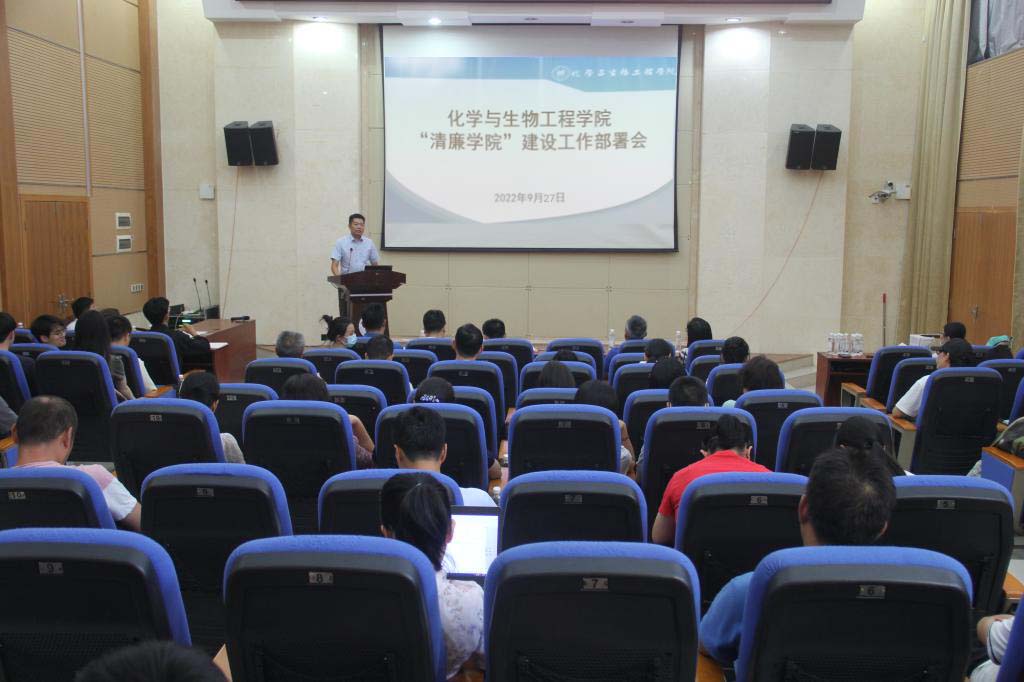 在萃华楼报告厅召开“清廉学院”建设工作部署会,学院党政领导及全体教职工参会。会议由学院党委书记彭代江主持。