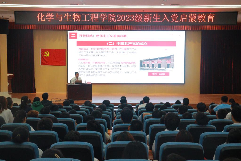 2023级新生思想政治觉悟,加深对中国共产党的认识,提高同学们的入党积极性,端正入党动机,10月27日中午在雁山校区图书馆报告厅,学院党委书记彭代江为2023级新生做“青春心向党 建功新时代”为主题的入党启蒙专题党课。本次党课由党委副书记李少华同志主持,2023级全体新生参与。