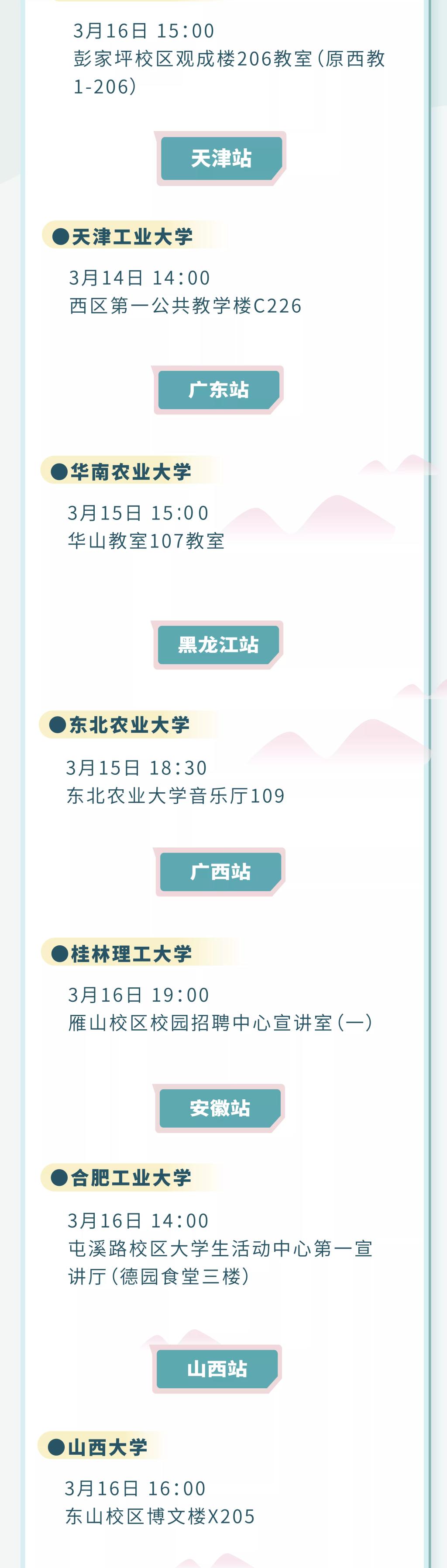 导航痕迹 当前位置: 快看漫画 >> 招生就业 >> 招聘信息 >> 正文 【招聘信息】养生堂·农夫山泉·万泰生物专场招聘会 作者:朱皓 发布日期:2023-03-13 浏览次数: 农夫山泉股份有限公司成立于1996年,于2020年9月8日港交所上市,发展至今已有2万多名员工,在全国拥有十大水源地、32个销售大区。在2012年至2019年间,农夫山泉连续八年保持中国包装饮用水市场占有率第一,也是在中国市场上同时具备规模性、成长性和盈利能力的软饮料龙头企业。 公司将于2023年3月16日19:00--20:00在 雁山校区校园招聘中心宣讲室(一)进行招聘。 上一条:学院成功举办广东广业云硫矿业有限公司专场招聘会 下一条:【招聘信息】深圳市飞荣达科技股份有限公司
